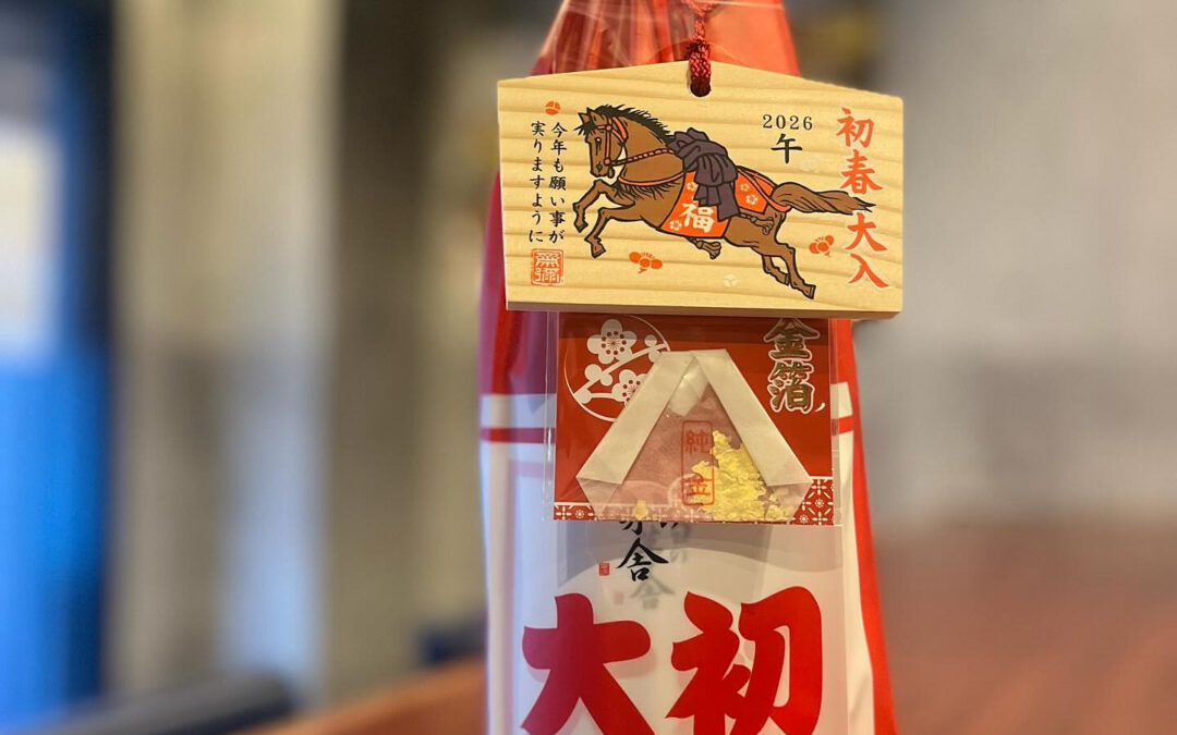 2026年の干支絵馬と純金箔が付いたお酒です.*・゚⟡.·